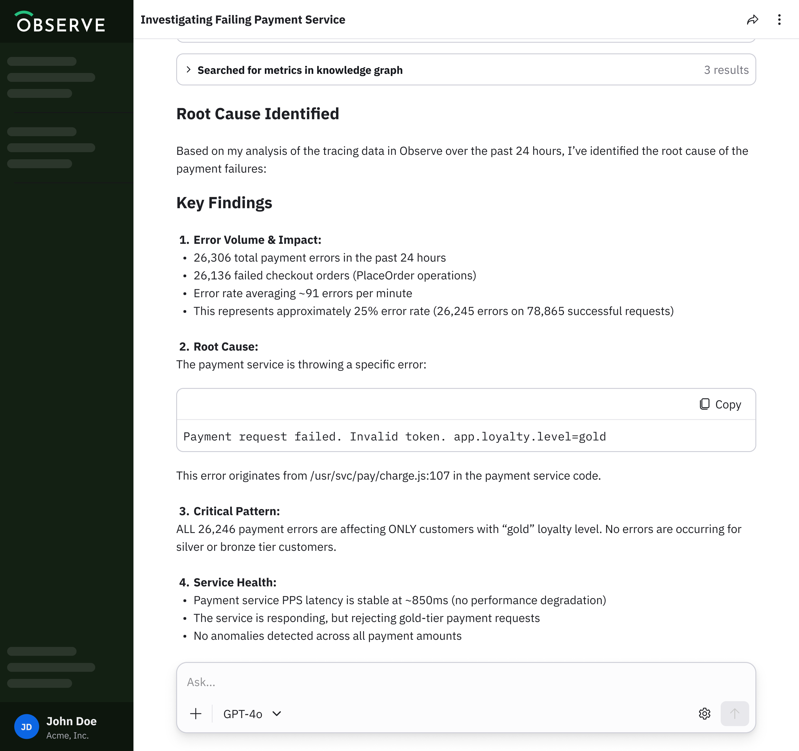 Observe’s AI SRE and MCP Server have the potential to transform how we investigate incidents and reduce the time engineers spend on resolving issues by providing faster, more contextual insight into system behavior.